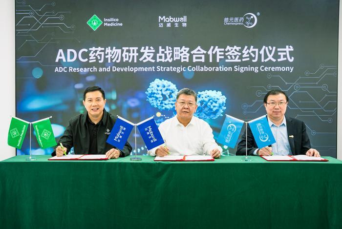 Shanghai, September 17, 2025 — Insilico Medicine, Mabwell Bioscience (688062.SH), and ChemExpress (688131.SH) officially announced the signing of a strategic cooperation agreement. The partnership is founded on the principles of complementary strengths, resource sharing, collaborative innovation, and mutual trust. The three parties will jointly develop a novel ADC compound library covering hundreds of targets, screen and advance next-generation ADC candidate molecules, and accelerate the industrialization of innovative ADCs.