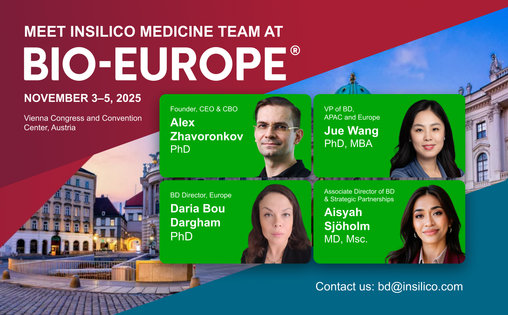 "BIO-Europe is a premier event for fostering the collaborations that drive biotech innovation," said Alex Zhavoronkov, PhD, Founder and CEO of Insilico Medicine. "This year, we are excited to introduce our emerging cardiometabolic portfolio, featuring novel programs targeting diseases closely linked to the aging process. We look forward to engaging with industry leaders and demonstrating how our Pharma.AI platform is accelerating the discovery of novel therapeutics. Our goal is to forge partnerships that will help enable longer, healthier lives for people around the world."